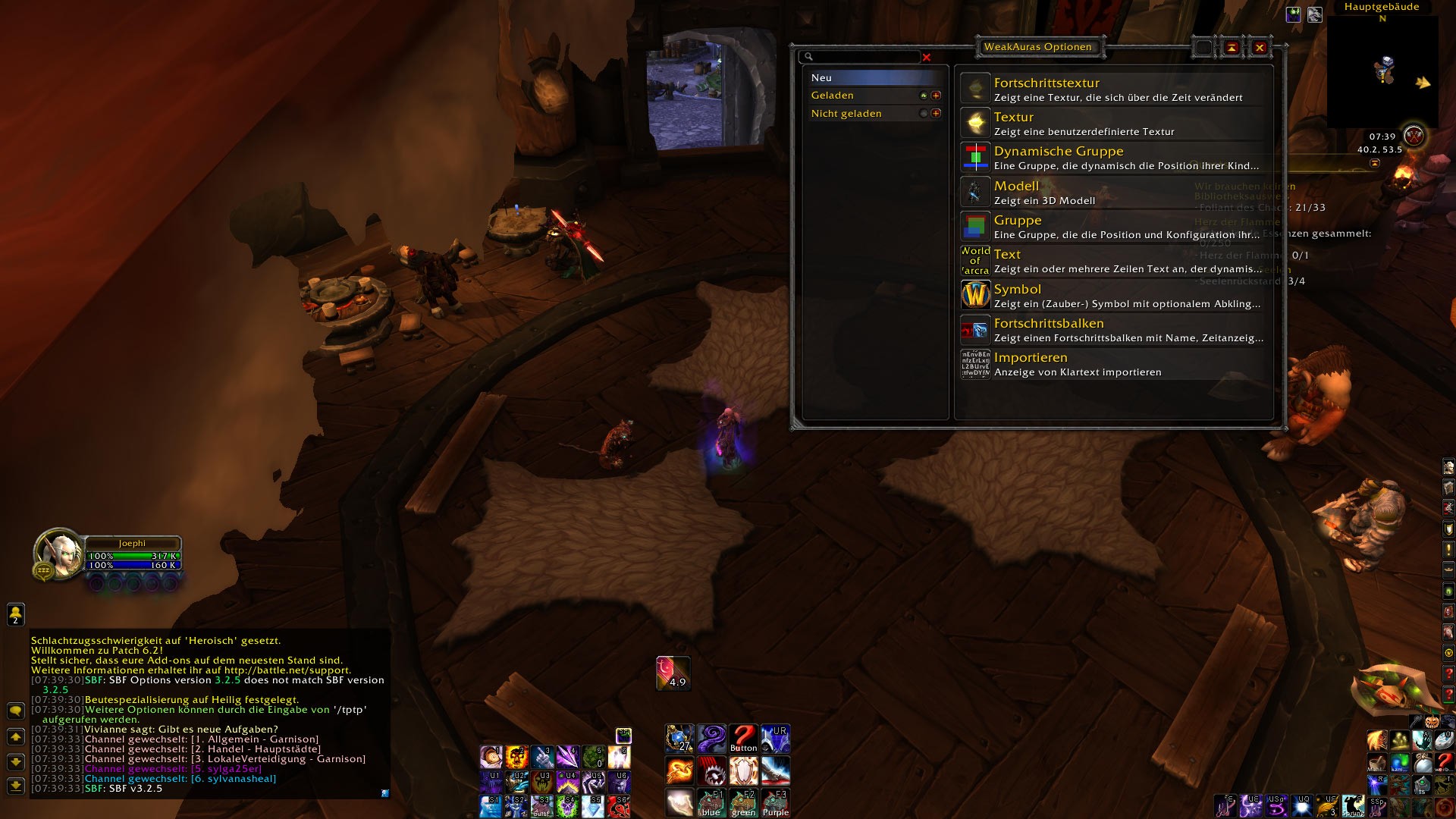 Daraufhin wird WoW eine kurze Zeit einfrieren, weil dieses über 100 Auren importieren muss. Einfach ruhig bleiben und kurz warten.