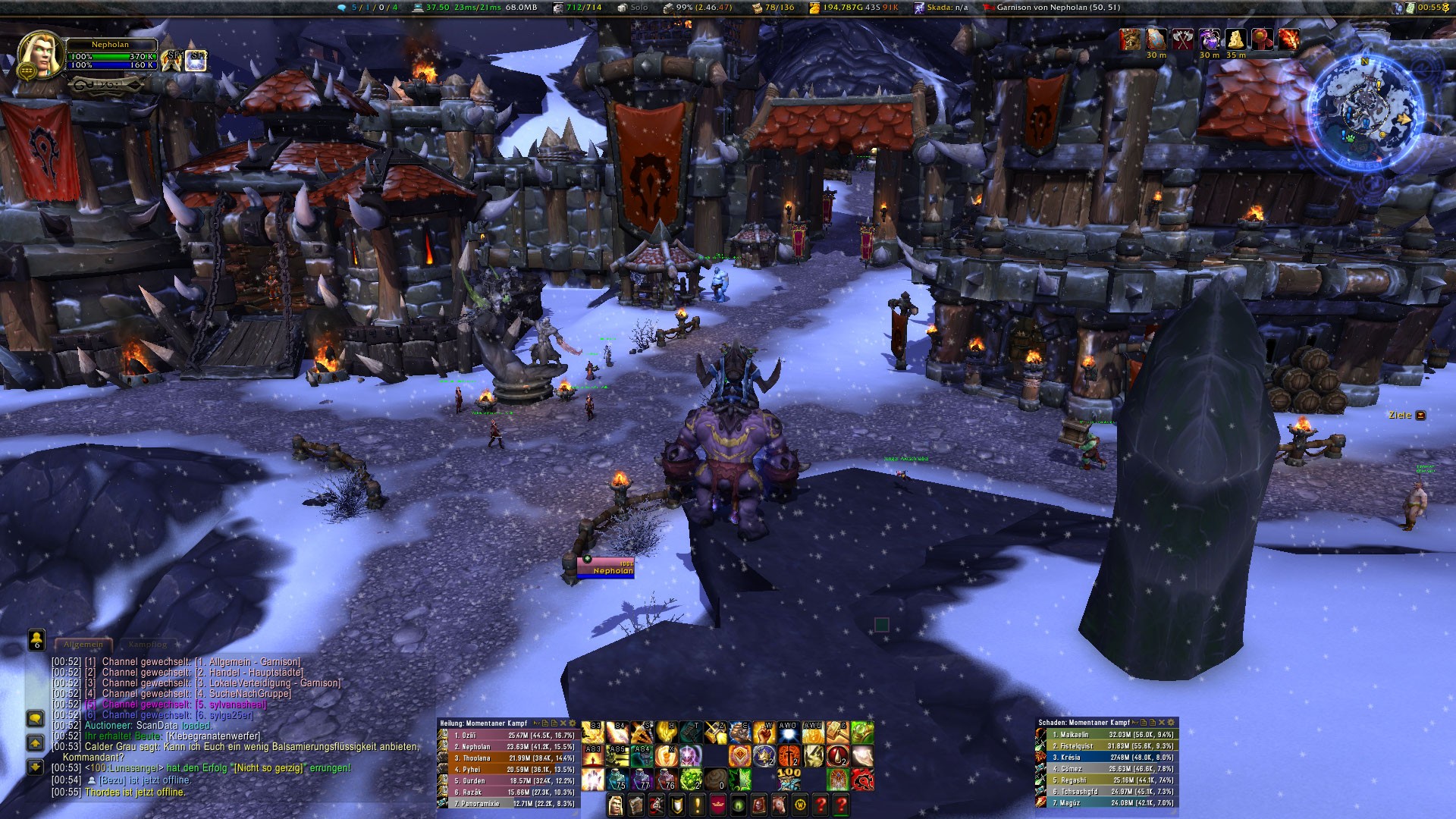 Gruppen und Raidframes sind links am Rand.