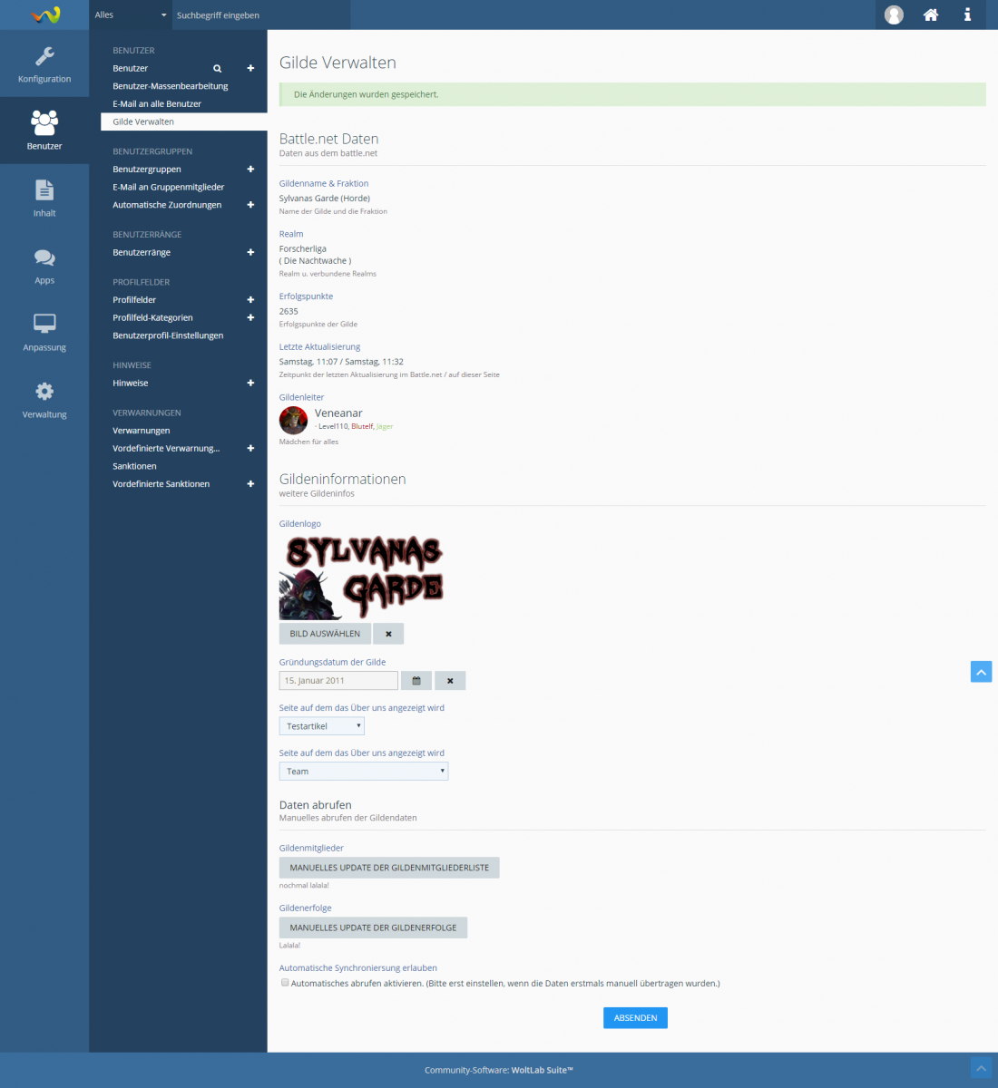 Aktuell gibt es nicht viel zu sehen, als letztes ist das Gruppenmanagement fertig geworden. Damit ist es zum Beispiel möglich in WoW Spieler im Forum direkt zu befördern.