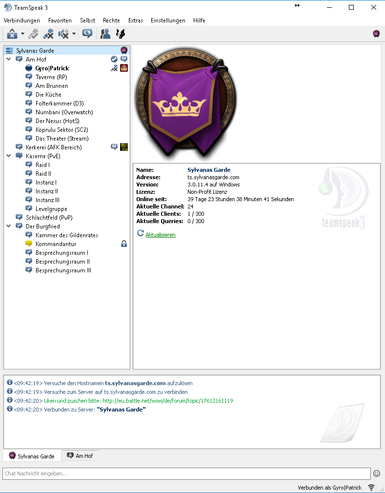 Hierher treibt es erstmal jeden, der das Teamspeak besucht. Der Raum eignet sich nur zum Entscheiden seines nächsten Zieles, da Reden hier nicht möglich ist.