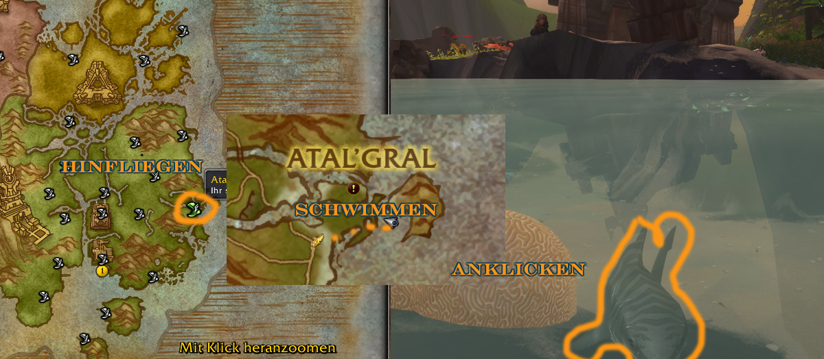 Auf die Plätze fertig los! heißt es gleich zweimal am 1.November. Einmal um 17:00 Uhr und das zweite Mal um 19:00 Uhr. Einfach im Gruppensuchtool nach der Gruppe "SylGa-HaiRennen" von dem Spieler "Veneanar-Forscherliga" Ausschau halten und schnell an die Ostküste von Zuldazar. Dort angekommen könnt sich die Teilnehmer in einen Hai verwandeln und am Riff versammeln. Etwa um viertel nach kommt dann das Startsignal und ihr folgt der Rennstrecke.